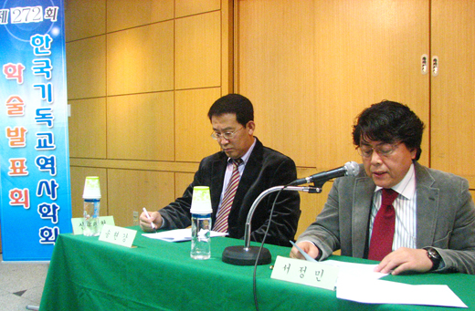 | ▲ 7일 오후 2시 새문안교회에서 열린 한국기독교역사학회 제272회 학술발표회에서 연세대 서정민 교수가 발제하고 있다 ⓒ베리타스 |