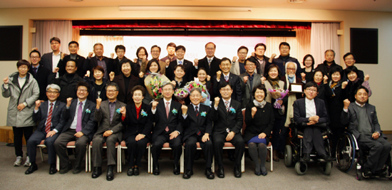 ▲사회적기업활성화 전국네트워크(상임 공동대표, 다솜이재단 안재웅 이사장, 고용노동부 이기권 장관)가 주최하고 한국사회적기업진흥원(원장 오광성)이 후원하는 2015년 제2회 <우수 사회적기업 어워드 시상식>이 12월1일(화) 오후 2시 서울YWCA 대강당에서 열렸다. ⓒ사진제공= 한국YWCA |