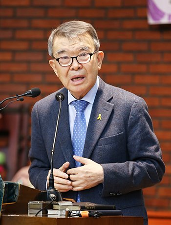 | ▲전 국사편찬위원장 이만열 박사(숙명여대 명예교수)가 7일 오후 사교육걱정없는세상(공동대표 송인수, 윤지희) 세미나실에서 “해방기의 역사쟁점과 기독교”를 주제로 강연에 나섰다. ⓒ베리타스 DB |