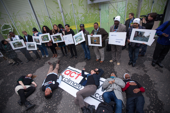 | ▲유엔기후회담 당사국총회(COP21)가 프랑스 파리에서 개최중인 가운데 교회협력행동(ACT) 연맹은 기후변화로 인한 손실과 피해를 환기시키는 시위를 벌이고 있다. ⓒ사진제공= Sean Hawkey/WCC |
