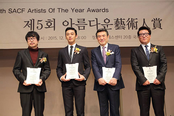 올해 <사도>, <베테랑>으로 큰 인기를 끈 배우 유아인 씨가 지난 8일(일) 재단법인 신영균예술문화재단(이사장 안성기)이 주최한 ‘제5회 아름다운예술인상’ 시상식에서 영화예술인상을 수상했다. 그리고 영예의 대상은 윤제균 감독에게 돌아갔다.