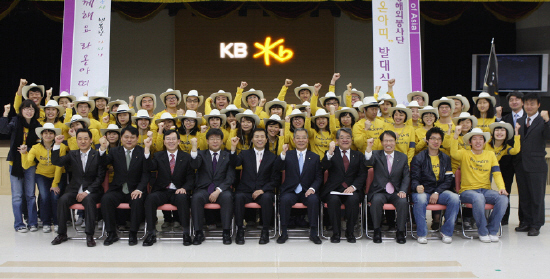앞서 4일 국민은행 본점에서 발대식을 가진 이들 봉사단은 아시아 8개국- 필리핀, 베트남, 캄보디아. 태국 2개 지역, 동티모르, 인도, 스리랑카, 말레이시아 등으로 출국, 5개월간 봉사활동을 실시할 계획이다.
