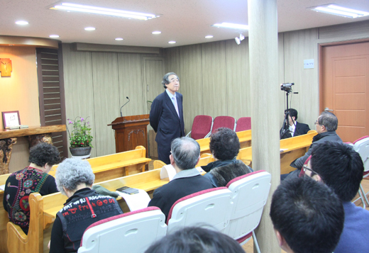 | ▲ 1일 오후 7시 삭개오작은교회에서 열린 갈릴리복음 성서학당에서 김경재 한신대 명예교수가 강의하고 있다 ⓒ김진한 기자 |