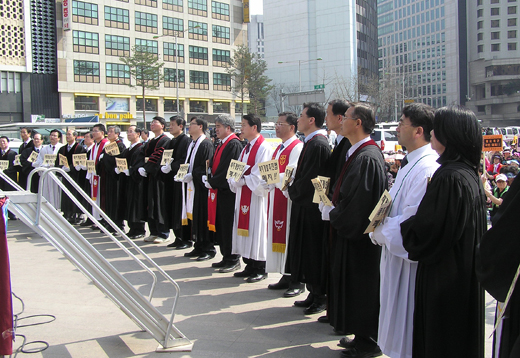 세입자들에게 무거운 짐인 재개발 문제와 관련, 8일 오후 2시 서울 시청 앞에서 집회가 열렸다. 용찬 참사 이후 상가임대교회 목회자들이 중심이 돼 결성된 ‘신도시·재개발지역 전국교회연합’(이하 전국교회연합, 고문 서경석 목사)이 주최한 것. 이날 800여 명의 세입자들 그리고 기독인들은 정부의 택지개발촉진법 및 재개발 관련법 폐지를 강력히 촉구했다.