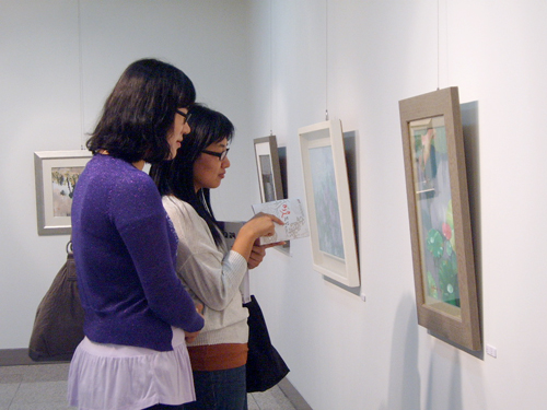 한국미술인선교회 SCFF미술전에서 관람객들이 전시 작품들을 살펴보고 있다.