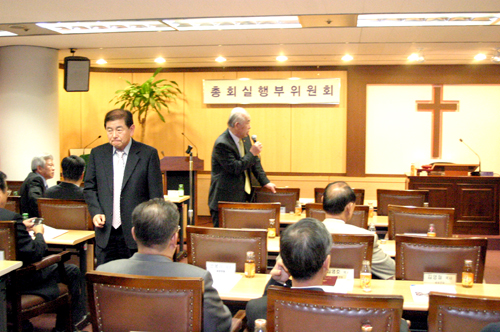 사진은 신경하 감독이 부재한 가운데 속개된 총회실행부위원회 진행 전경이다.