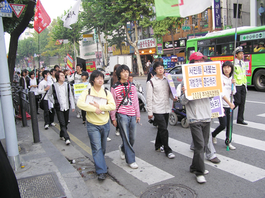 17일 UN이 정한 빈곤퇴치의 날을 맞이해 오후 2시 대학로 마로니에 공원에 모인 참석자들이 서울 연지동 한국기독교회관을 지나 종로 5가 사거리까지 가두행진을 이어갔다. 이번 가두행진에는 청년 실업인들도 많이 참여해 서민들의 인권을 주장했다.