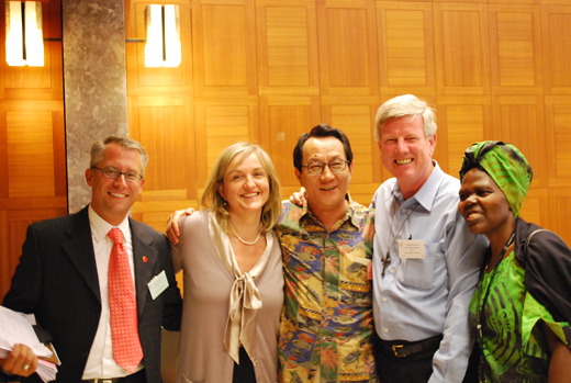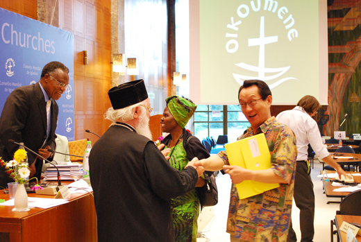 | ▲ 2013년 WCC 차기 총회 유치를 위해 동분서주했던 박종화 목사(WCC 총회 유치 집행위원장)가 차기 총회 개최지가 부산 벡스코로 확정되자 WCC 관계자들과 기념사진을 촬영하고 있다 ⓒ김태양 기자 |
