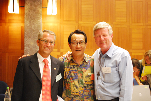 | WCC 총회 유치 집행위원장 박종화 목사가 유치국 결정 직후 WCC 관계자들과 기념사진을 촬영하고 있다ⓒ김태양 기자 |