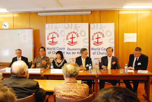 | ▲ 1일 오전 11시(현지시각) 스위스 제네바 에큐메니컬 센터에서 2013년 WCC 차기 총회를 유치한 한국측 멤버들이 기자회견을 갖고 있다 ⓒ김태양 기자 |
