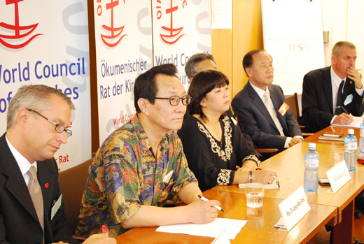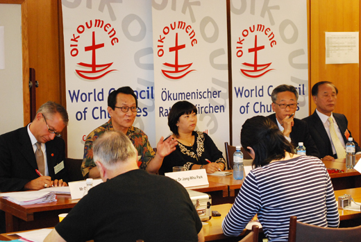 | ▲ 1일 오전 11(현지시각) 스위스 제네바 에큐메니컬 센터의 프레스 룸에 참석한 WCC 한국측 멤버들이 2013년 WCC 차기 총회 유치와 관련, 기자회견을 갖고 있다 ⓒ김태양 기자 |