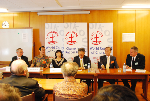 이날 기자회견장에는 2006년 9회 WCC 총회의 코디네이터였던 Douglas Chial, 박종화 목사, 정혜선 WCC 중앙위원, NCCK 권오성 총무, 조성기 목사(예장통합 사무총장) 등이 참석했다.