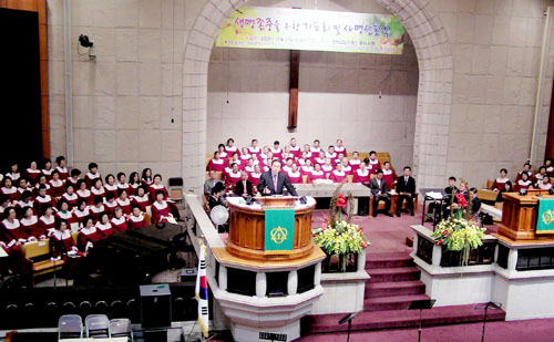 한국교회희망연대(상임대표 이철신 목사, 이하 한희연) 등 5개 단체가 주최한 ‘생명존중을 위한 기도회 및 사명선포식’ 이 29일 오후 7시 서울 영락교회 본당에서 열렸다.