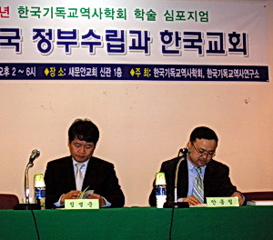 2008년 한국기독교역사학회 학술 심포지엄이 지난 1일(토) 오후 2시 새문안교회 신관 1층에서 “대한민국 정부수립과 한국교회”라는 주제로 개최됐다. 한국기독교역사학회와 한국기독교역사연구소 주최로 열린 이번 심포지엄은 주로 이승만 대통령 등 대한민국 정부수립 즈음의 기독교적 흐름에 대해 설명하는 자리였다.