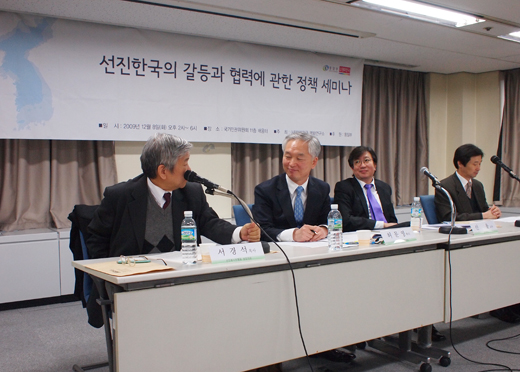 사단법인 평화한국(대표 허문영) 평화연구소가 주최하고, 통일부가 후원하는 선진한국의 갈등과 협력에 관한 정책 세미나가 8일 오후 2시부터 6시까지 국가인권위원회 11층 배움터에서 열렸다. 박종화 목사(대화문화아카데미 이사장)가 기조 강연을, 명지대 신율 교수(정치외교학과)와 서울대 박효종 교수(윤리교육과)가 발제를, 서경석 목사(선진화시민행동 상임대표), 이대근(경향신문 논설위원), 양영식(전 통일부 차관), 홍윤기 교수(동국대) 등이 대담자로 참여했다.