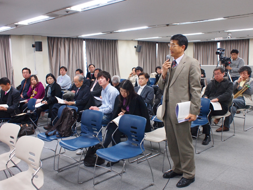| ▲8일 오후 2시 국가인권위원회 11층 배움터에서 열린 선진한국의 갈등과 협력에 관한 정책 세미나에서 한 참석자가 토론자들에게 질의하고 있다 |