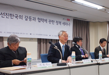 8일 평화한국(대표 허문영)이 주최한 선진한국의 갈등과 협력에 관한 정책 세미나에서는 이명박 정부의 중도 실용 정책과 남남갈등을 둘러싸고, 토론자들의 논박이 이어졌다.