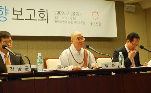 발표는 법륜 스님이 맡았다. ‘되돌아보는 2009 오늘의 북한’이란 제목으로 법륜 스님은 북한의 식량상황을 시작으로 △곡물가격 동향 △농사 상황 △시장 상황 △화폐 교환 조치 △신종독감 발생 △인권 상황 △재중 탈북난민 상황 △신년사설과 강연제강 △150일 전투 △기타 체제 관련 동향 등에 관해 발표했다.