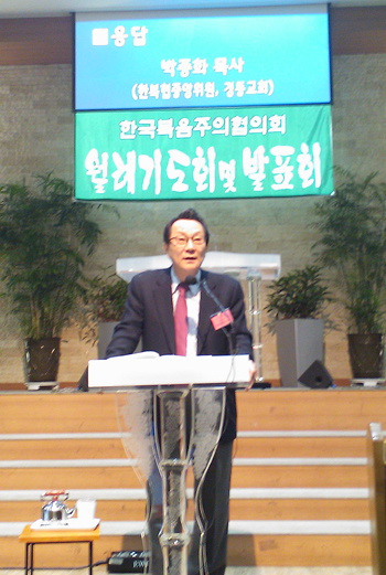 8일 오전 7시 화평교회에서 한국복음주의협의회(한복협)의 2010년 첫 조찬기도회 및 월례발표회가 열렸다. 이날 발표회에는 경동교회 박종화 목사는 각 참석자들의 발표에 논평했다.