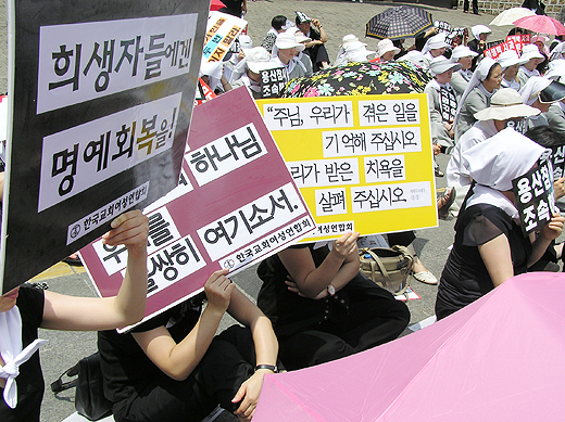 | ▲작년 7월 개신교, 천주교, 불교, 원불교 등 4대 종단이 여성 성직자들이 용산 문제 해결을 위한 여성 추모제를 열었다. 개신교측에서 참여한 한국교회여성연합회가 용산 참사 진상을 촉구하고 있는 모습 ⓒ베리타스 DB |
