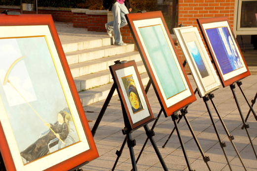 | ▲ 서강대에 전시되고 있는 윤석인 수녀의 작품들 ⓒ 푸르메재단 |