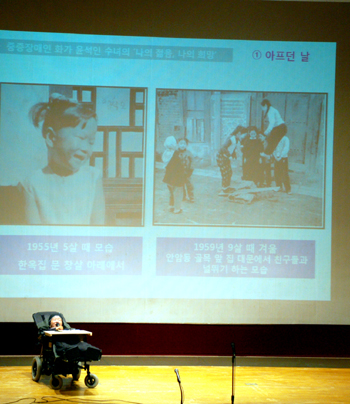 | ▲ 윤석인 수녀가 ‘나의 젊음, 나의 희망’을 강의하고 있다 ⓒ 푸르메재단 |