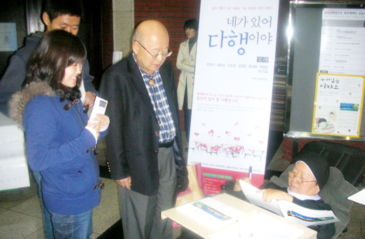 | ▲ 강의가 끝난 후 청강자들에게 사인을 해주는 윤석인 수녀 ⓒ 푸르메재단 |