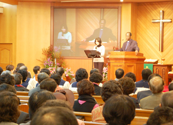 | ▲예배전경. WARC 세트릭 니오미 목사가 설교하고 있다 ⓒ 김진한 기자 |