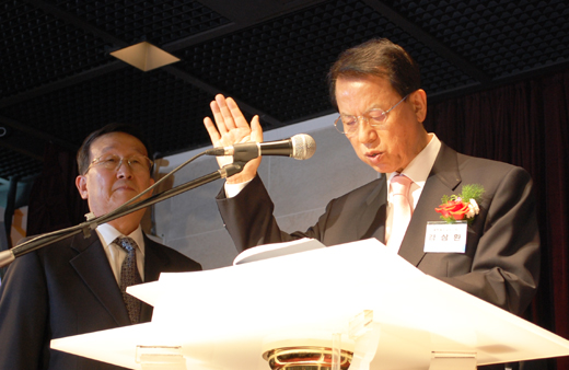 | ▲ 김삼환 목사가 NCCK 신임회장 선출직후, 취임에 앞서 선서를 하고 있다 ⓒ 김진한 기자 |