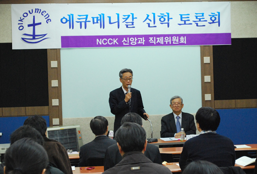 19일 오후 4시 한국기독교회관 2층 소회의실에서 NCCK 신앙과 직제위원회 주관으로 에큐메니컬 신학 토론회가 열렸다. 이날 이형기 장신대 명예교수는 'WCC 중심의 에큐메니컬 운동의 역사와 신학'이란 주제로 강연했다.