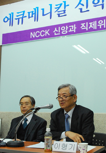 | ▲NCCK 신앙과 직제위원회 부위원장 연세대 이양호 교수(좌)와 장신대 이형기 명예교수(우) |