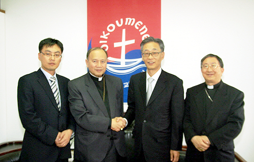 권오성 총무는 “NCCK와 한국천주교회는 한반도 통일을 위해 함께 노력하고 기도하고 있으며, 특히 2009년 개최되는 일치기도회를 함께 준비하며 세계가 함께 사용하게 될 기도문 중에도 남북의 평화를 위한 내용을 담고 있다”며 “교황청에서도 남북의 통일 문제에 대해 함께 기도해 주시기를 바란다”고 답했다.