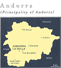 안도라는 프랑스와 스페인에 둘러싸인 피레네 산맥에 위치한 작은 공국이다. 사방이 육지로 둘러싸여 있으며, 깊은 계곡과 넓게 펼쳐진 산들로 이뤄져 있으며, 춥고 눈이 많은 겨울과 건조하고 더운 여름이 있다.