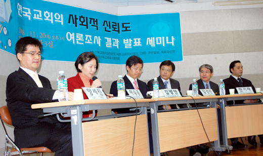아울러 개신교가 과거의 위상을 회복하기 위해 ‘그들만의 종교’가 아닌 ‘만인을 위한 종교’가 되어야 한다는 전문가들의 충고도 있었다. 이날 세미나엔 이숙종 교수(성균관대 행정학과), 임성빈 교수(장신대 기독교와문화), 한기채 목사(중앙성결교회), 이문식 목사(산울교회, 한목협 정책위원) 등이 참석해 각각 ‘개신교회의 사회자본을 넓히는 길’ ‘신학자가 보는 사회적 신뢰도 여론조사’‘기독교의 대외 신뢰도’‘여론조사에 대한 목회적 반응’등을 주제로 발제했다.