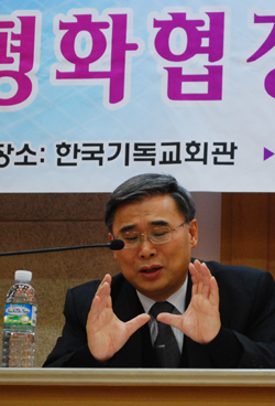 '한반도 평화협정 체결의 가능성과 추진방안'이란 주제로 강연한 이 전 장관은 "그동안 평화협정 논의를 주도해오고 국제사회로부터 그 주도력을 어느 정도 인정받아온 한국정부가 정권교체를 계기로 동력을 거의 상실해 버린 것"이라고 지적했다.