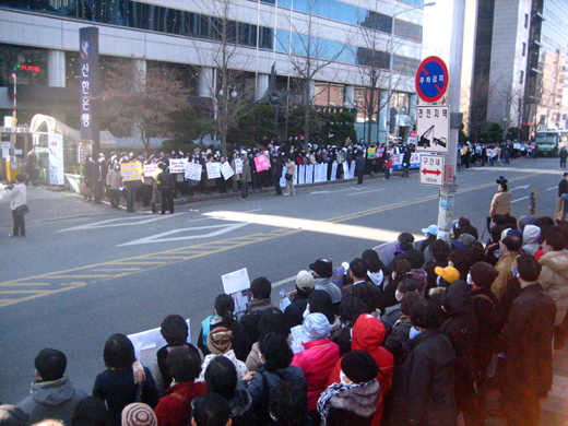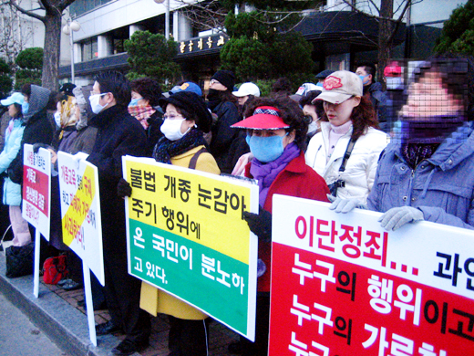 이들은 현재 “인권유린 중단하고 가정파탄 중단하라” “진 모 목사의 한기총 이대위 부위원장직을 사퇴 조처하라!” “한기총은 진 모 목사의 활동비를 지급하지 말라!” “한기총은 이번 피해사태에 대해 해명하라!” 등의 구호를 외치며 진 모 목사의 개종강요 사태에 대한 한기총의 해명을 요구하고 있다.