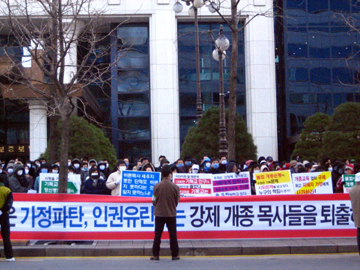 진 모 목사로부터 강제개종교육 피해를 받았다고 주장하는 사람들로 구성된 ‘강제 개종교육 피해자 연대’가 3일 오전 11시 30분 서울 종로구 연지동 소재 한국기독교총연합회관 앞에서 ‘종교의 자유, 인권 회복을 위한 시민대회’를 개최, 강제 개종교육으로 인한 피해사례를 고발했다.