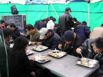 기자 역시 끼니를 떼우지 못한 터라 노숙자들 틈바구니에 끼어 배식을 받았다. 배고픔에 장사없다더니, 음식을 보니 반가움이 밀려왔다. 수북히 얹어주는 밥과 반찬 그리고 국물엔 풍성함이 베어있다. 옆에 앉은 한 노숙자는 하루 종일 굶었는지 숟가락을 들자마자 정신없이 밥과 국을 떠 먹었다. 종국에는 쌀 한톨이라도 남기지 않으려고 숟가락으로 식판 구석구석을 요란하게 긁는 소리가 인상 깊었다. 그렇게 식사를 마친 노숙자들은 또 삼삼오오 모여 영등포역 광장 여기 저기로 흩어졌다.