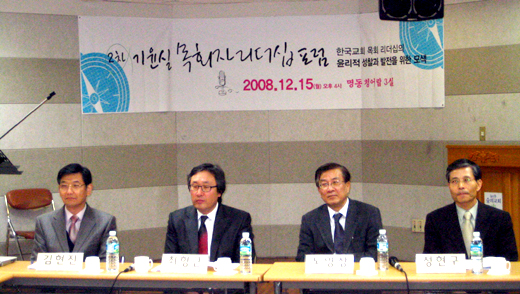 15일 오후 제2차 기윤실 목회자리더십 포럼에서 ‘목회윤리적 관점에서 본 한국교회의 목회 리더십’을 주제로 발제한 노영상 교수(장신대 기독교윤리학)는 “목회자들의 윤리적인 규정들을 각 교단마다 정하고 강화할 필요가 있다”고 주장했다. 그는 “미국의 경우 목회자들을 위한 목회 윤리규정이 만들어져 있지만 한국에는 없다”며 “이를 각 교단마다 제정하고, 또 신학교에서 목회를 준비하는 신학생들에게 윤리적인 측면들을 가르치고 훈련시킬 필요가 있다”고 말했다.